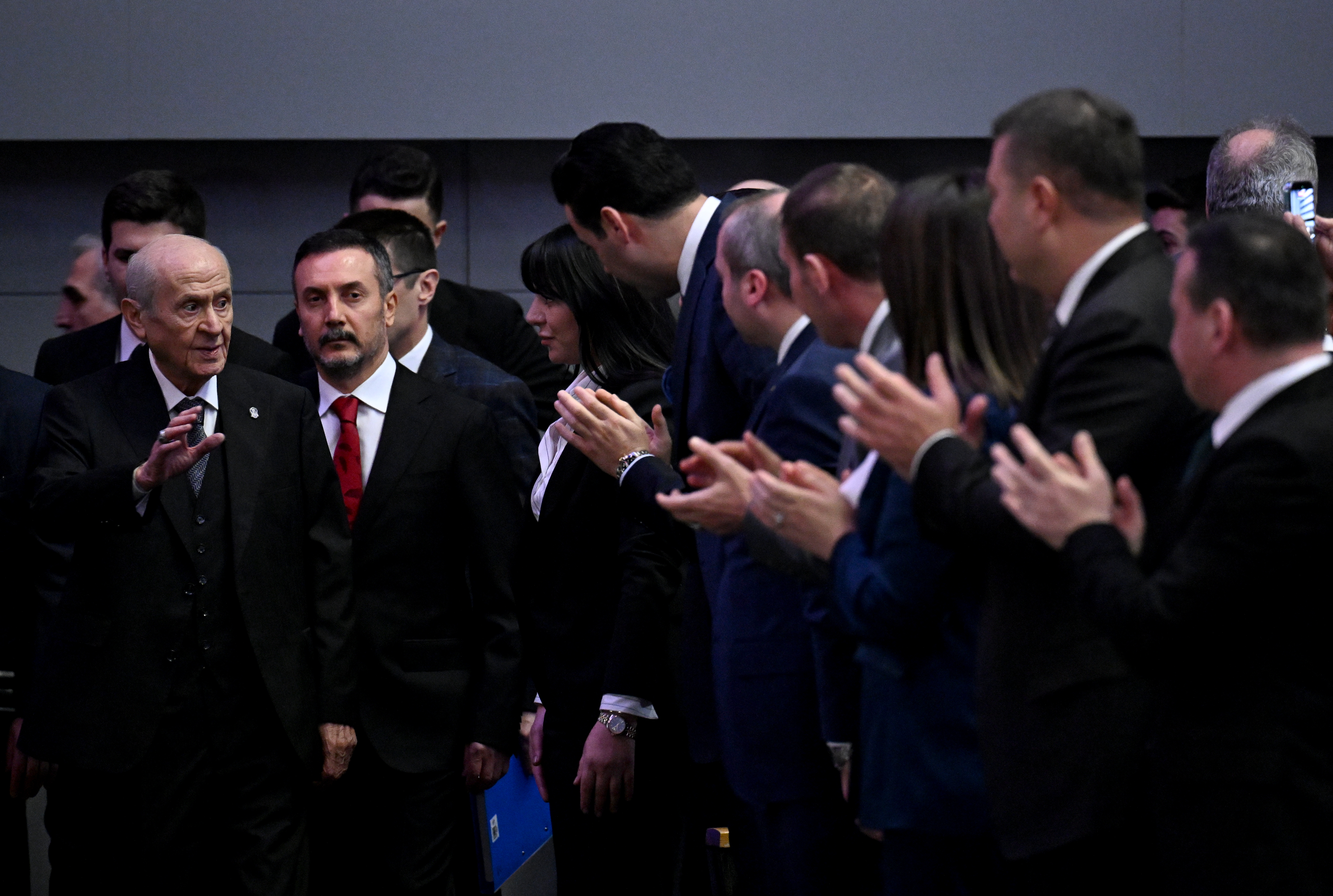 Bahçeli konuşmasında, "Sahte samimiyet maskesi takan turfanda ve tufeyli milliyetçilerin atıp tutmaları, kemiksiz palavraları, kesintisiz parazitlikleri bizim nazarımızda sadece içi boş varil gürültüsünü andırmaktadır" diyerek, parti değiştiren isimlere de göndermede bulundu.