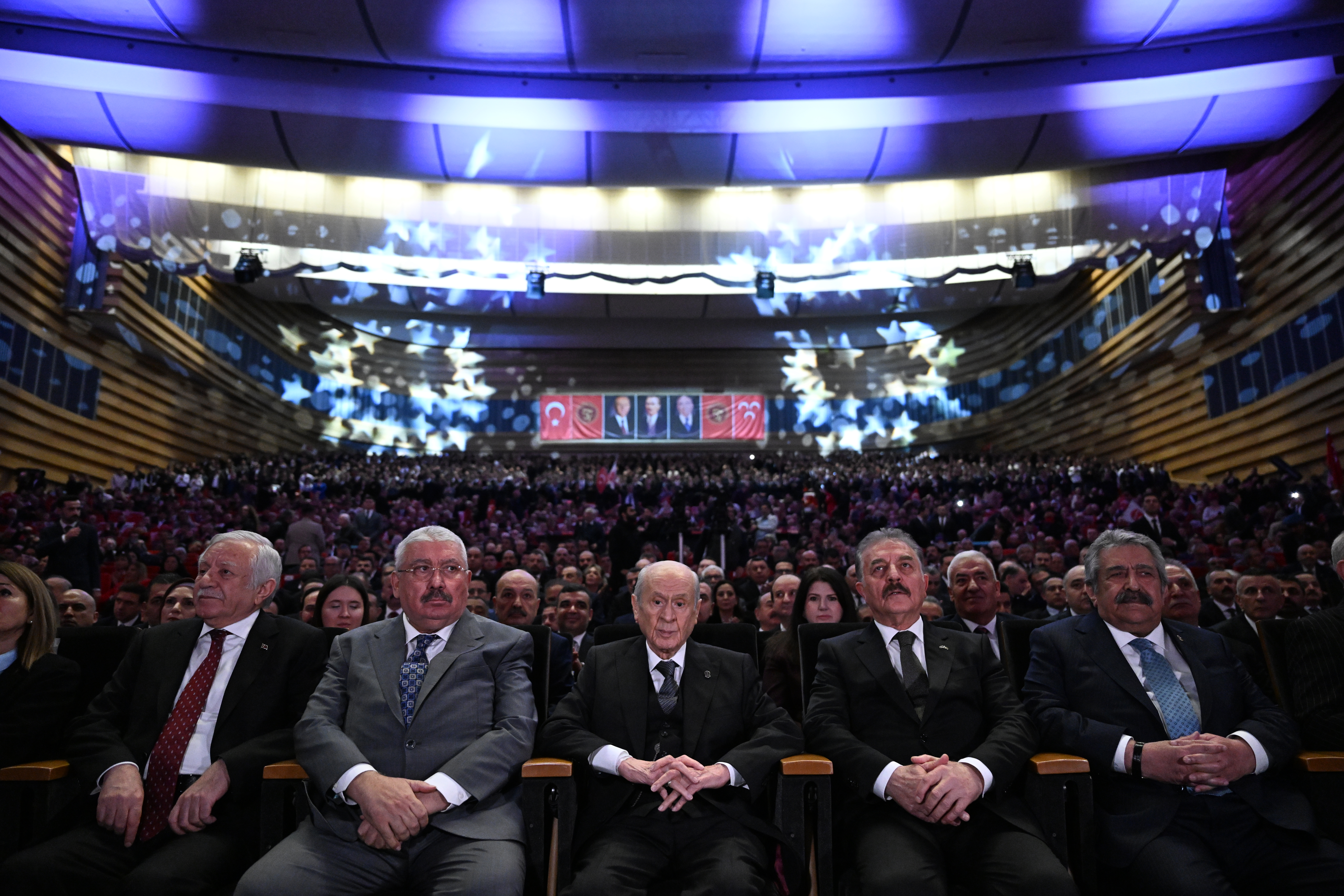 MHP lideri Bahçeli, partisinin 57'nci kuruluş yıl dönümü nedeniyle ATO Congresium'da "Şanla Şerefle 57. Yıl" başlıklı programda kritik mesajlar verdi. Bahçeli'nin konuşmasının tamamı şöyle: