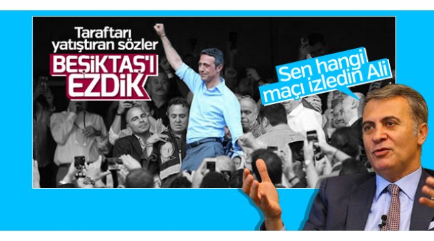 Ali Koç'un iddialı sözlerine Beşiktaşlılar'dan yanıt gecikmedi. Siyah-beyazlı yönetim, derbide Fenerbahçe'nin Beşiktaş'ı ezmesinin söz konusu olmadığını ifade ederek, "Biz başka maç mı izledik? Rakamlar ortada. Beşiktaş topla oynamada, pas sayısında, korner sayısında, yapılan orta sayısında daha üstündü. Bu nasıl ezmek Ali Başkan!"ifadelerini kullandılar.