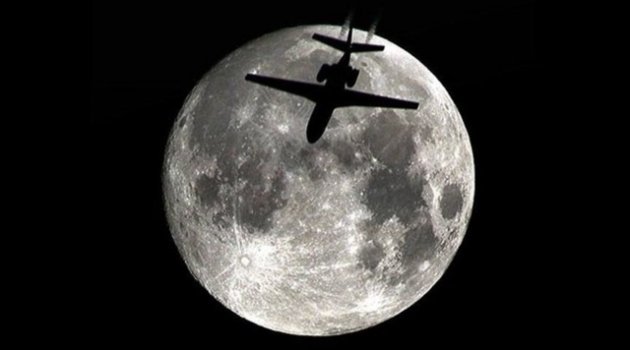 Dünya ‘Kanlı Ay’ tutulmasını beklerken, Ay’ın dün gece yolcu uçağıyla aynı karede çekilen fotoğrafı, ‘Ay’a seyahat’ algısına yol açtı.