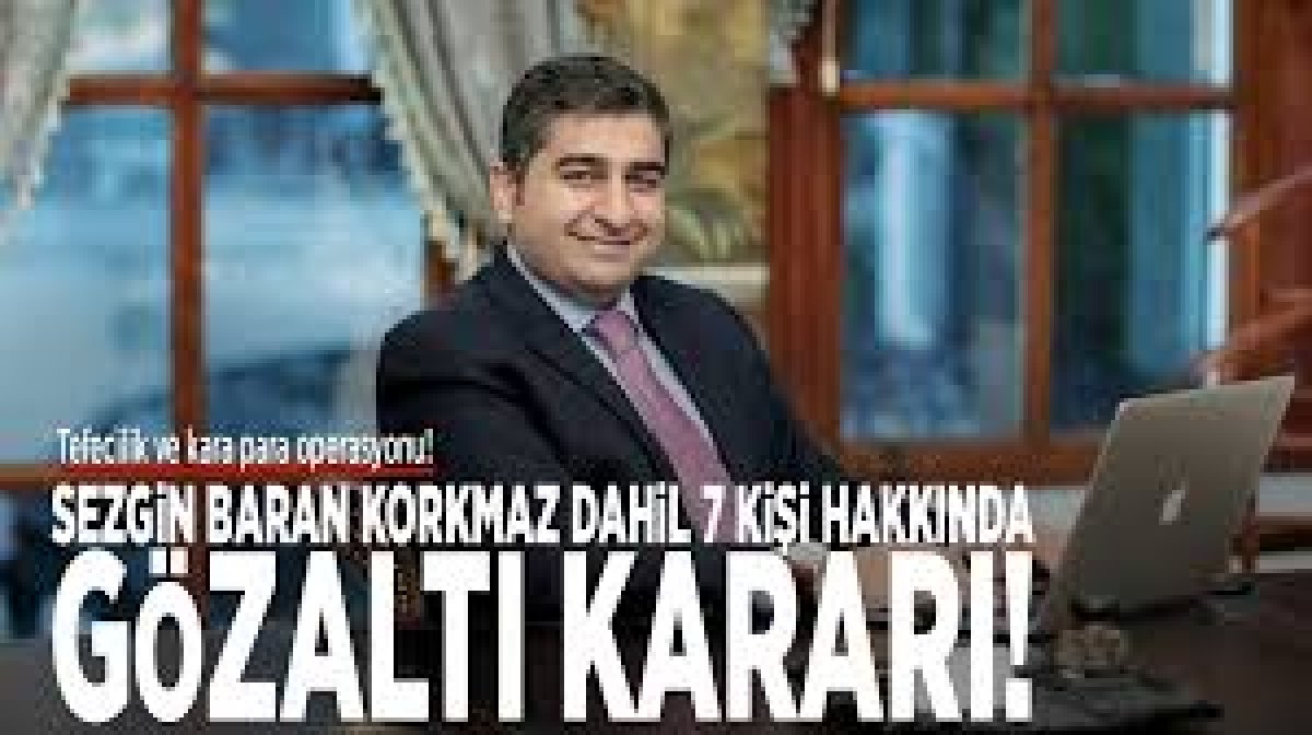 Sezgin Baran Korkmaz dahil 7 kişiye gözaltı kararı...İstanbul'da Sezgin Baran Korkmaz'ın da aralarında olduğu 7 kişi hakkında kara para soruşturması başlatıldı. Soruşturma kapsamında 5 kişi gözaltına alındı.
